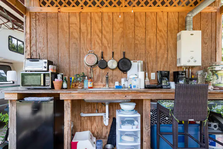 Guests have access to kitchenette, private bathhouse, all grounds, fire pit, kayaks and bike path.