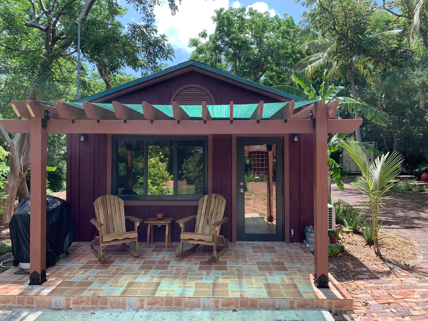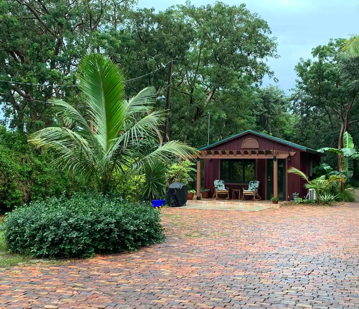 Property with a Guesthouse; enjoy the wildlife specially birds, manatees, dolphins, gardens, bay front beach a short walk, fishing pier, sunsets open bay views. Cabin is not beach front.