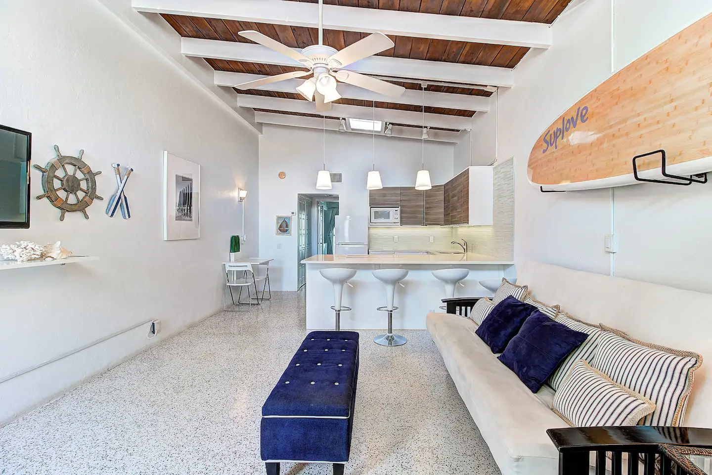 This one story townhouse was newly renovated and has its own private access to the #1 beach in the US merely steps away from the front door. It boasts all the luxury you’d expect from a beach house! Modern kitchen, contemporary bathroom with walk in rain shower, luxurious bedroom and living room equipped with 42’ and 32’ flat screen TVs.