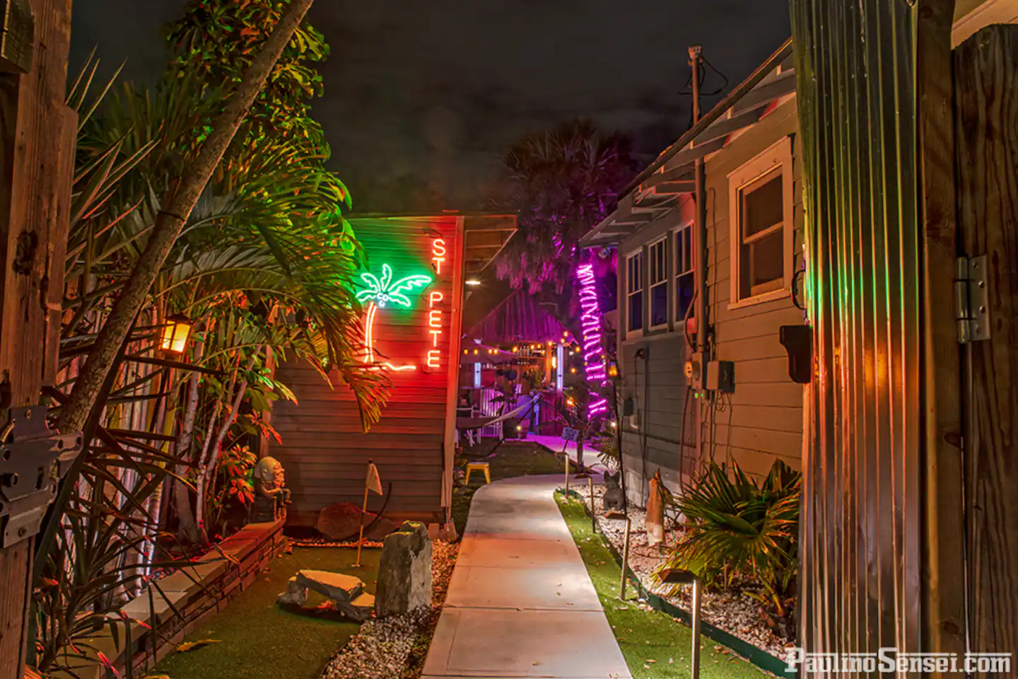 This oasis of coolness is located 2 miles from downtown St.Peterburg. The outdoor space is shared no more than five people including yourself. The space I have built is something I call my little Oasis and I am happy to share the experience with others. This backyard you will find lots of cool things to do. Chill out, what I call the VIP lounge or get some Florida sun in the sun chairs. Beach is about 15 mins away if choose that instead. Relax in the unique mini pool set up with a drink. After hours the place lights up where there are plenty of things to do with each other or other guests! I have Yard Yahtzee, corn hole, Board games, and much more. Later in the night relax by the fire pit for a cozy fire. ( Fire logs Available for sale). I also provide a self serves snack and Drink bar for sale items if you dont have to go to the store every time if you are wanted a drink or munchy. just write in the book what you have and check-out before you leave. the property also has an outdoor kitchen for you to use (alcohol not provided).I host guests around the world that's really great to know some people if you happened meet but then go back to your tiny private space. I been working hard to create wonderful space and be involved with the community. It is not the freshly cut grass neighborhood with beautiful homes in more well develop area but perfectly safe base out 300 peoples feedback which I believe is a lot of information to make a determination to book. I make up with the space and the location to downtown. With that said I cant offer refunds base off the neighborhood. I rarely get cancelation because of this but I believe any guest should know beforehand.:) I do live the on property but away most times. so if there is anything you need please let me know, I will be close by. LGBT friendly host!