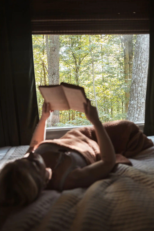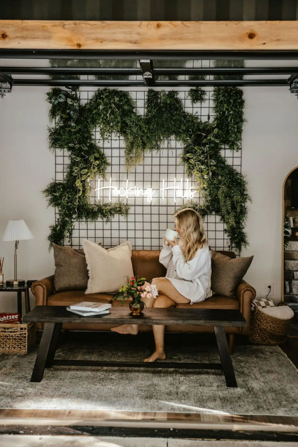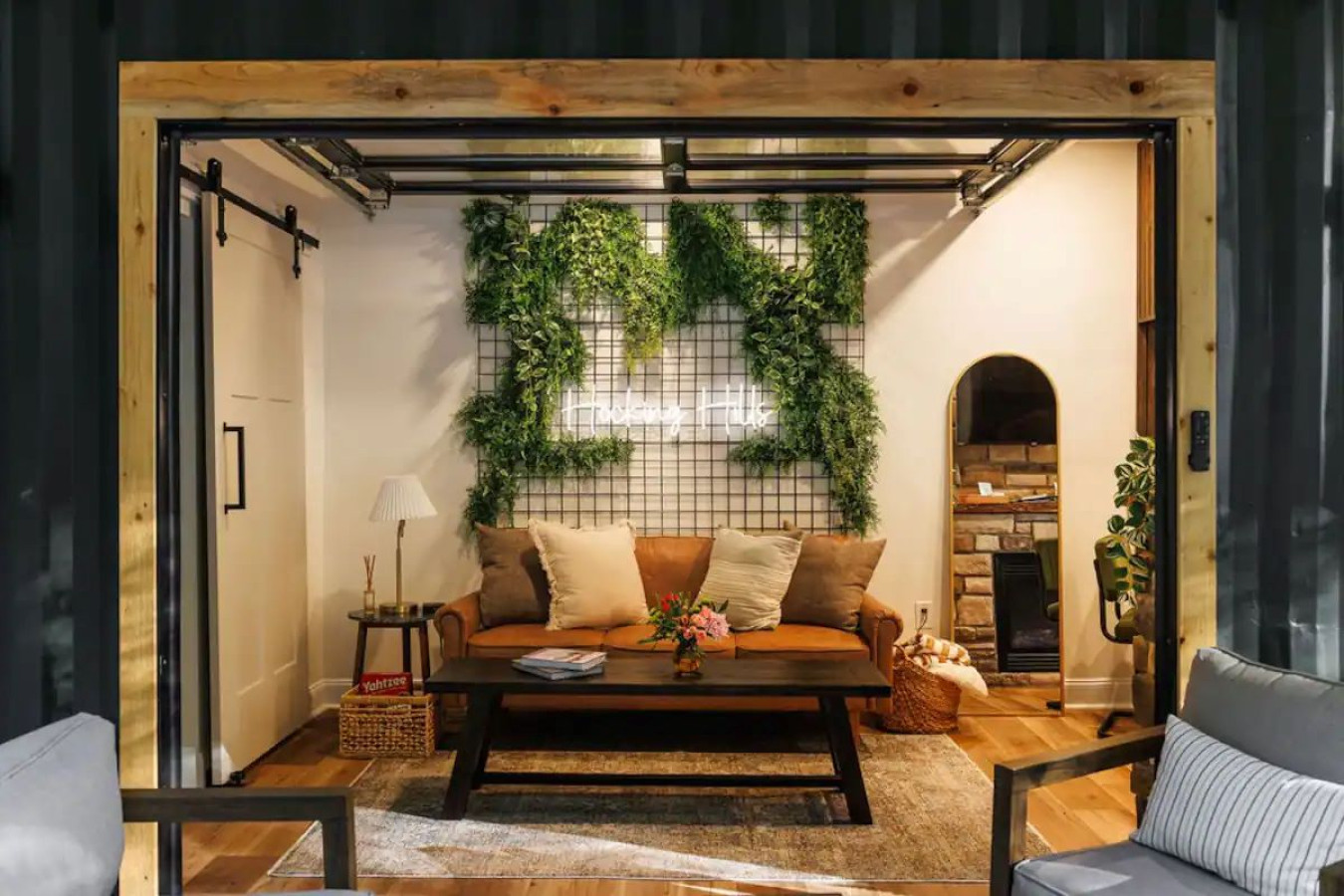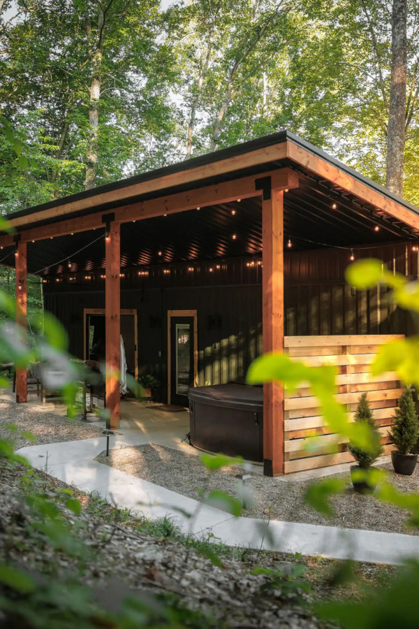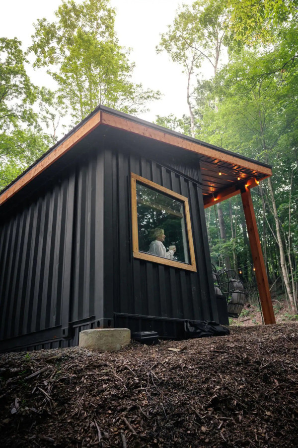 / nightThe retreat is located on a beautiful, secluded hillside surrounded by trees and wildlife. It's the ultimate getaway for couples, friends, or solo travelers looking for a unique and secluded experience in the beautiful Hocking Hills region. Step inside the Hillside Retreat and you'll be greeted by a charming and stylish interior. The open floor plan includes a living area, kitchen, and bedroom with a queen bed, all thoughtfully designed to maximize space and comfort. The large windows flood the space with natural light and provide stunning views of the surrounding nature. A garage door opens up to a spacious patio, perfect for sipping your morning coffee while soaking in the peaceful surroundings. The kitchen is fully equipped with everything you need, including a refrigerator, stove top, and all necessary utensils and cookware. Enjoy your meals at the quaint little dining table or take them outside to the patio and dine al fresco. When you're ready to relax, head to the queen-sized bed with a full window looking into the wooded setting. The luxurious full bathroom has a shower and all the toiletries you need for a refreshing clean up. Outside, you can build a campfire in the designated fire pit area, or enjoy a relaxing soak in the hot tub while taking in the private setting. The Hillside Retreat is also conveniently located just a short drive from all the best hiking, rock climbing, and other outdoor activities in Hocking Hills. Escape the hustle and bustle of everyday life and retreat to the Hillside Retreat for a peaceful and unforgettable Hocking Hills experience. Book your stay today and get ready to reconnect with nature in a unique and stylish way.