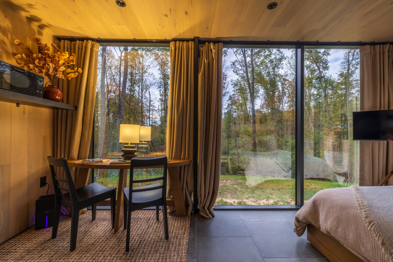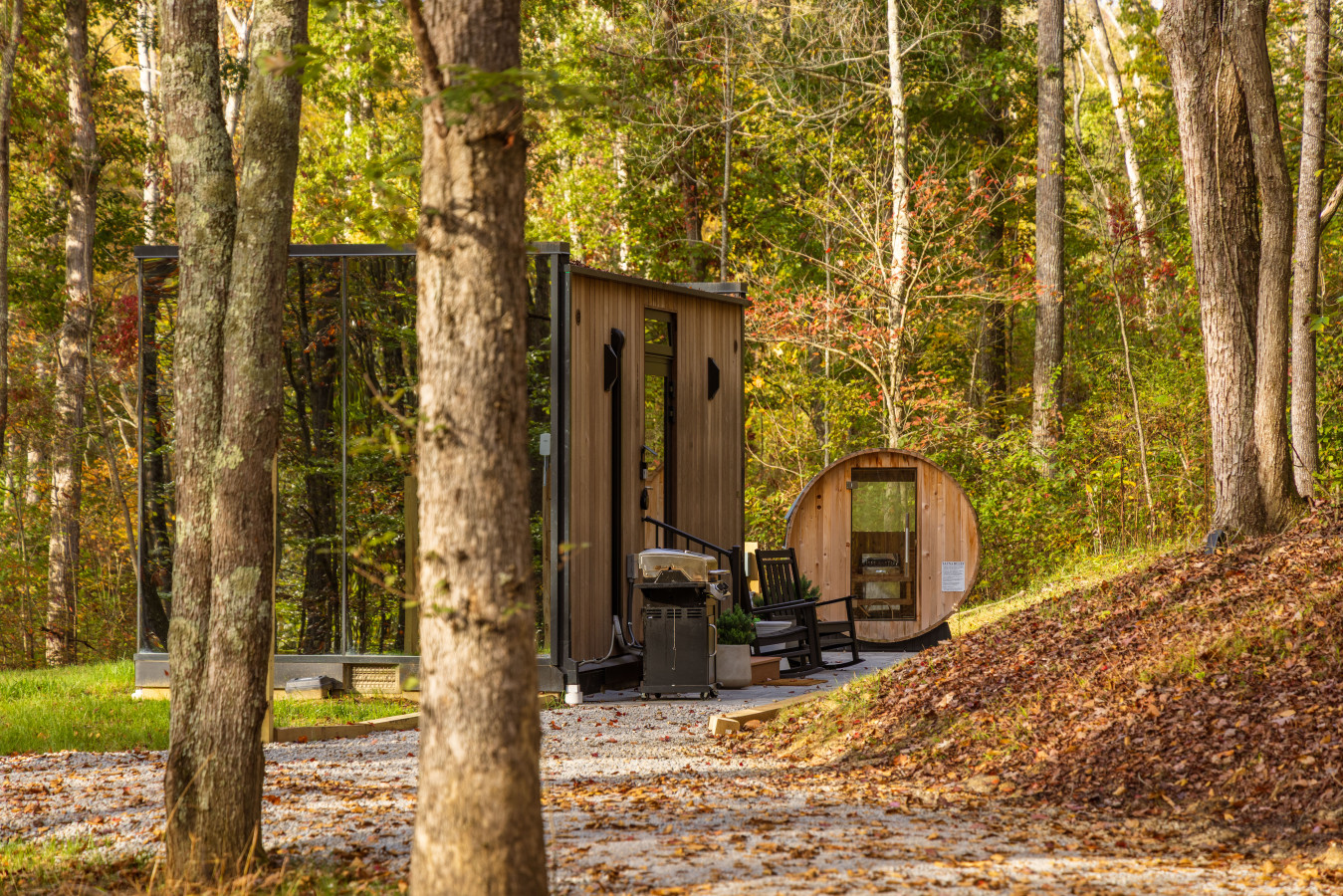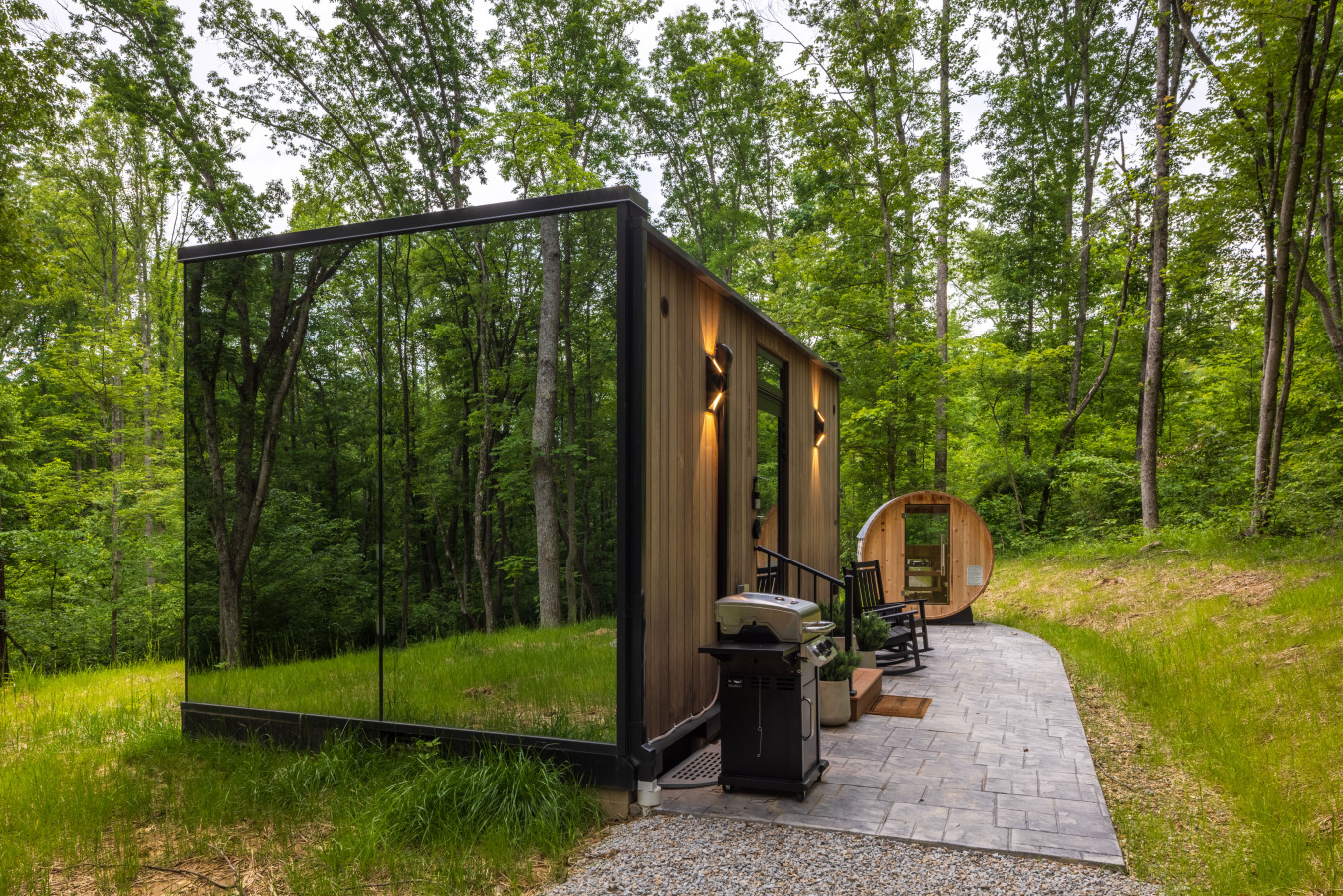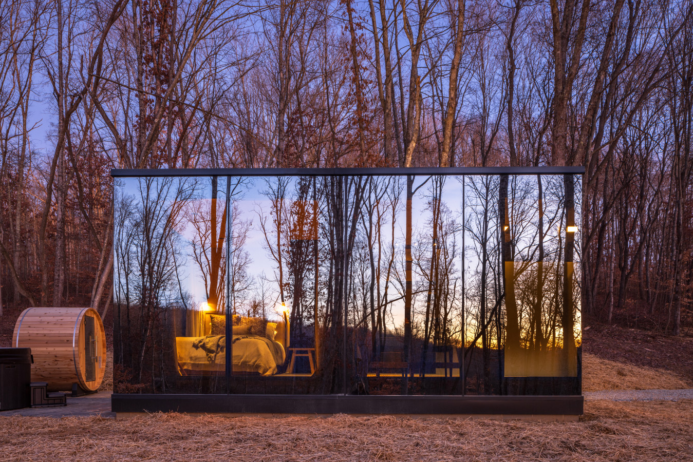 / night✨ This luxurious glass cabin retreat offers all the comforts of home—complete with a well-appointed kitchenette, a cozy fire pit, and a plush queen-sized bed—all surrounded by the quiet beauty of the woods. With soft, filtered views of the night sky and easy access to scenic hiking trails, The Illusion Hideaway is the perfect place to step away from the everyday and rekindle both romance and adventure. Book your stay at The Illusion Hideaway and experience the ultimate blend of relaxation, rejuvenation, and natural beauty. ✨