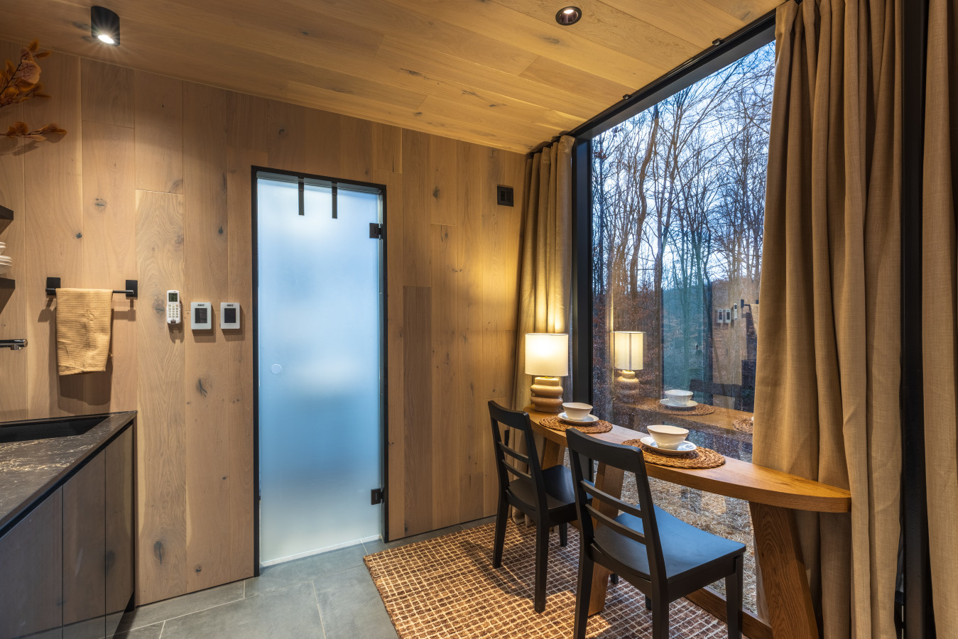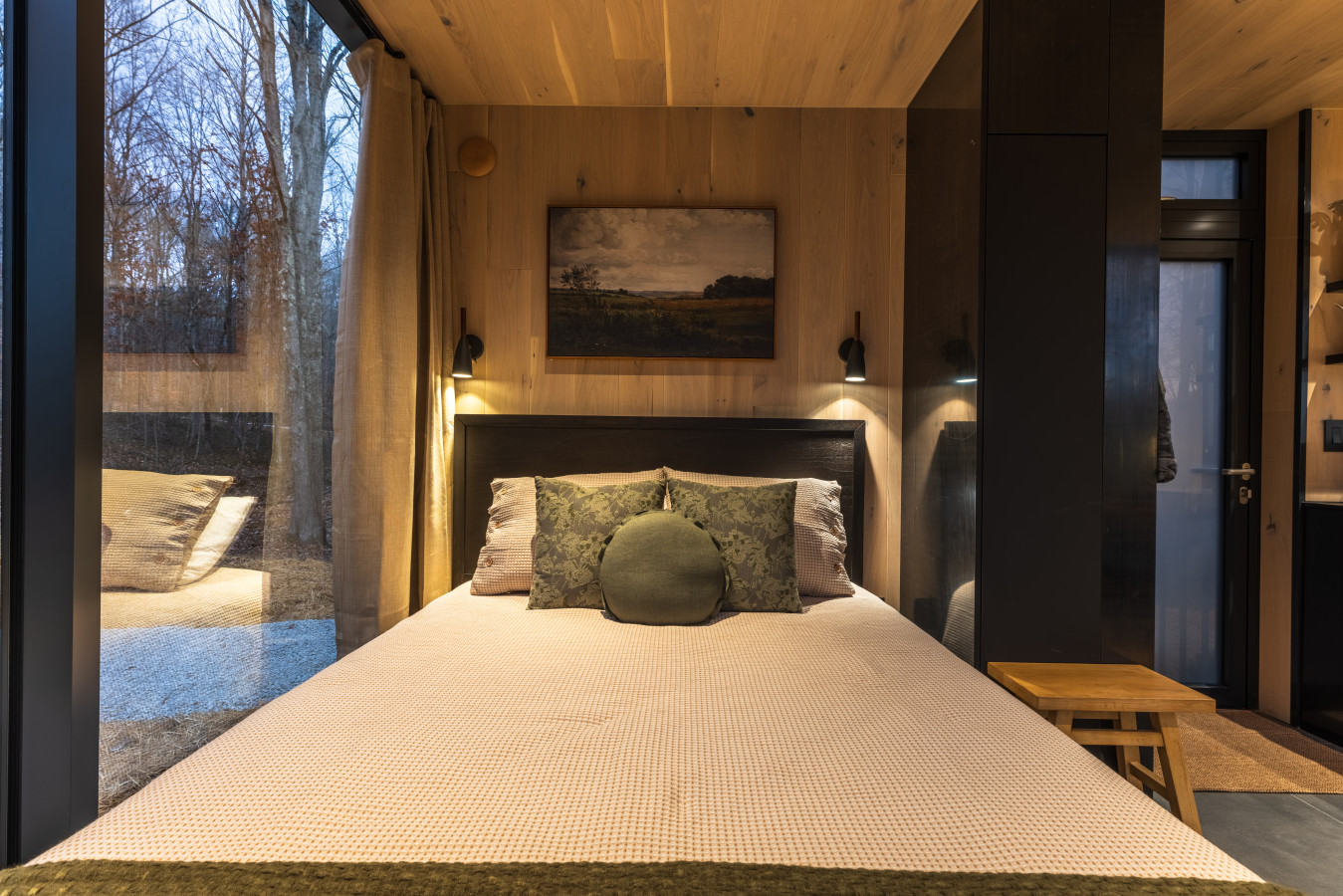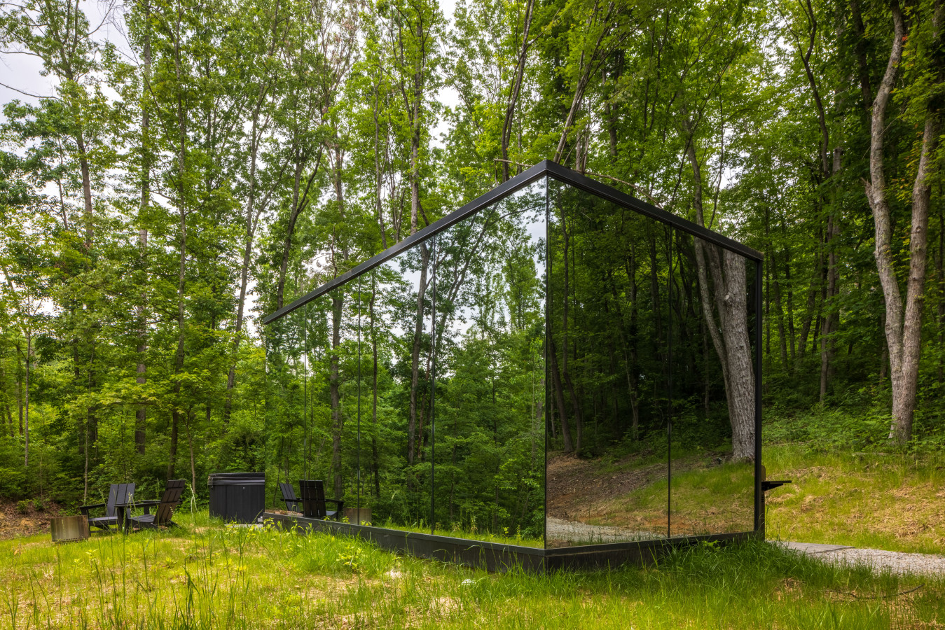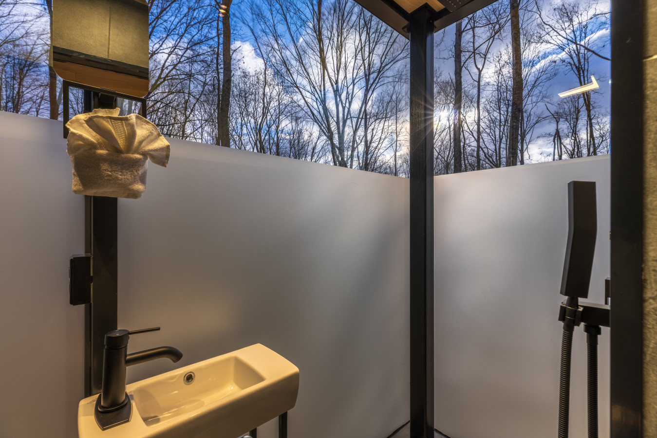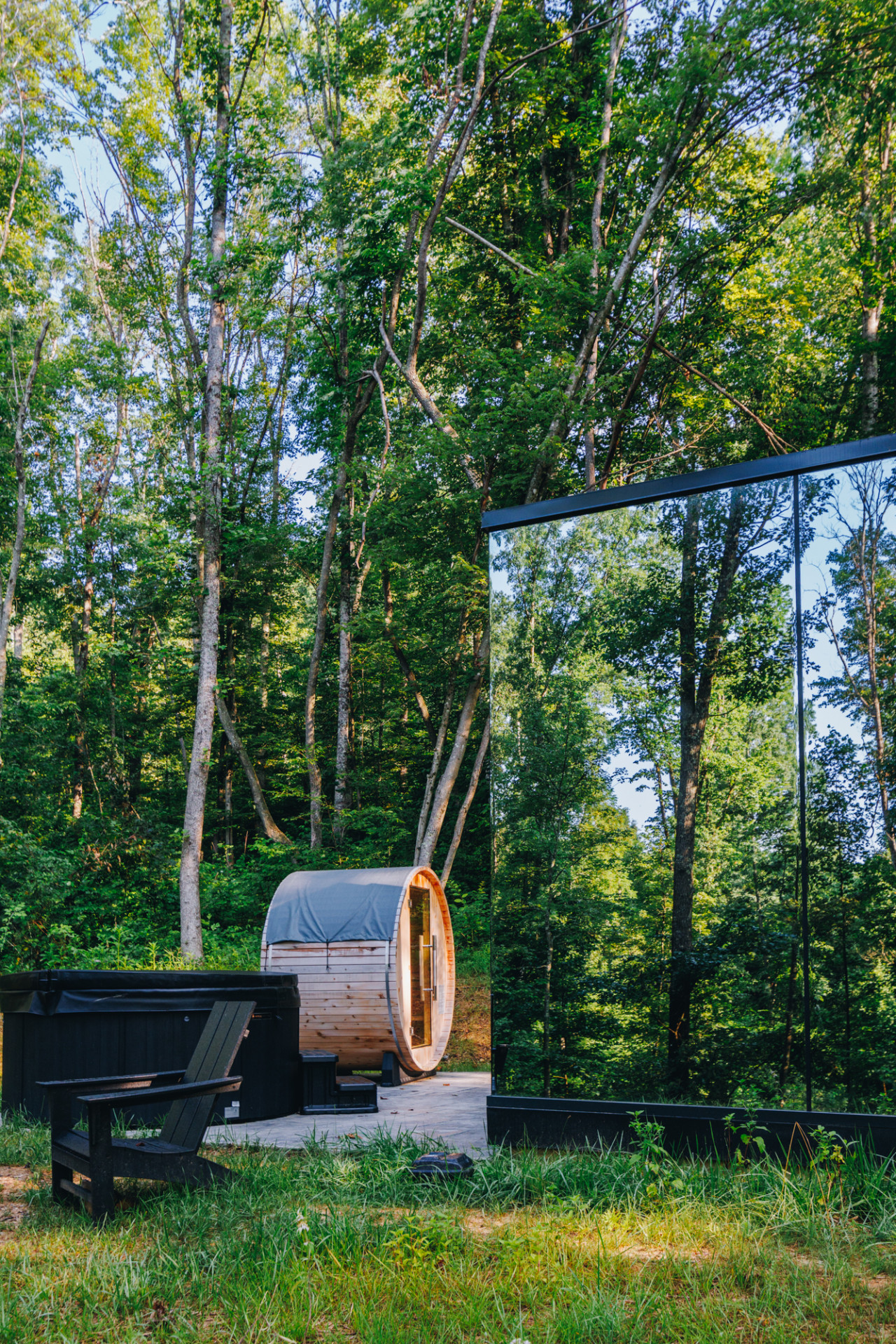 / night✨ This luxurious glass cabin retreat offers all the comforts of home—complete with a well-appointed kitchenette, a cozy fire pit, and a plush queen-sized bed—all surrounded by the quiet beauty of the woods. With soft, filtered views of the night sky and easy access to scenic hiking trails, The Illusion Hideaway is the perfect place to step away from the everyday and rekindle both romance and adventure. Book your stay at The Illusion Hideaway and experience the ultimate blend of relaxation, rejuvenation, and natural beauty. ✨