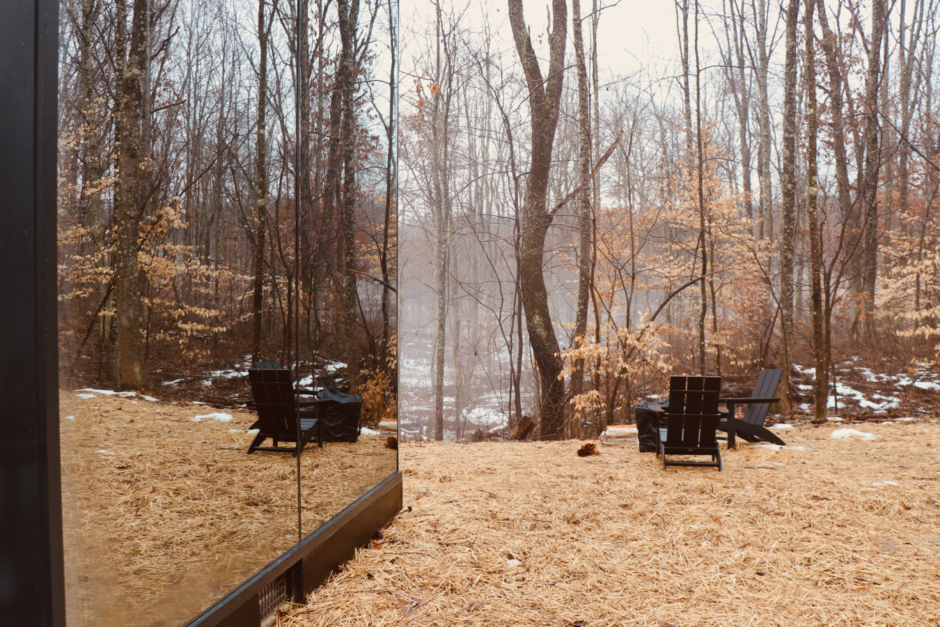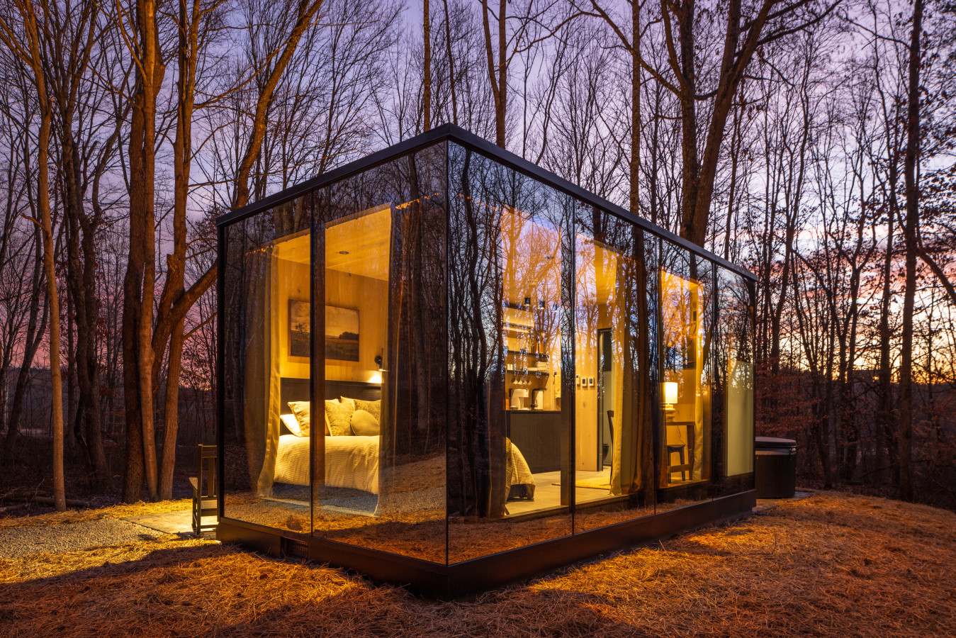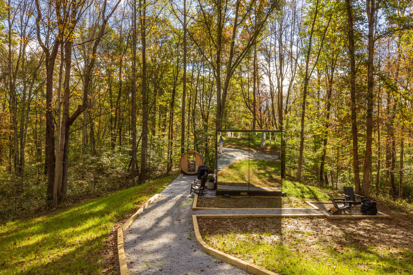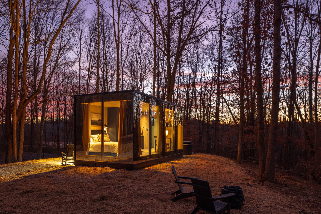 / night✨ This luxurious glass cabin retreat offers all the comforts of home—complete with a well-appointed kitchenette, a cozy fire pit, and a plush queen-sized bed—all surrounded by the quiet beauty of the woods. With soft, filtered views of the night sky and easy access to scenic hiking trails, The Mirage is the perfect place to step away from the everyday and rekindle both romance and adventure. Book your stay at The Mirage and experience the ultimate blend of relaxation, rejuvenation, and natural beauty. ✨