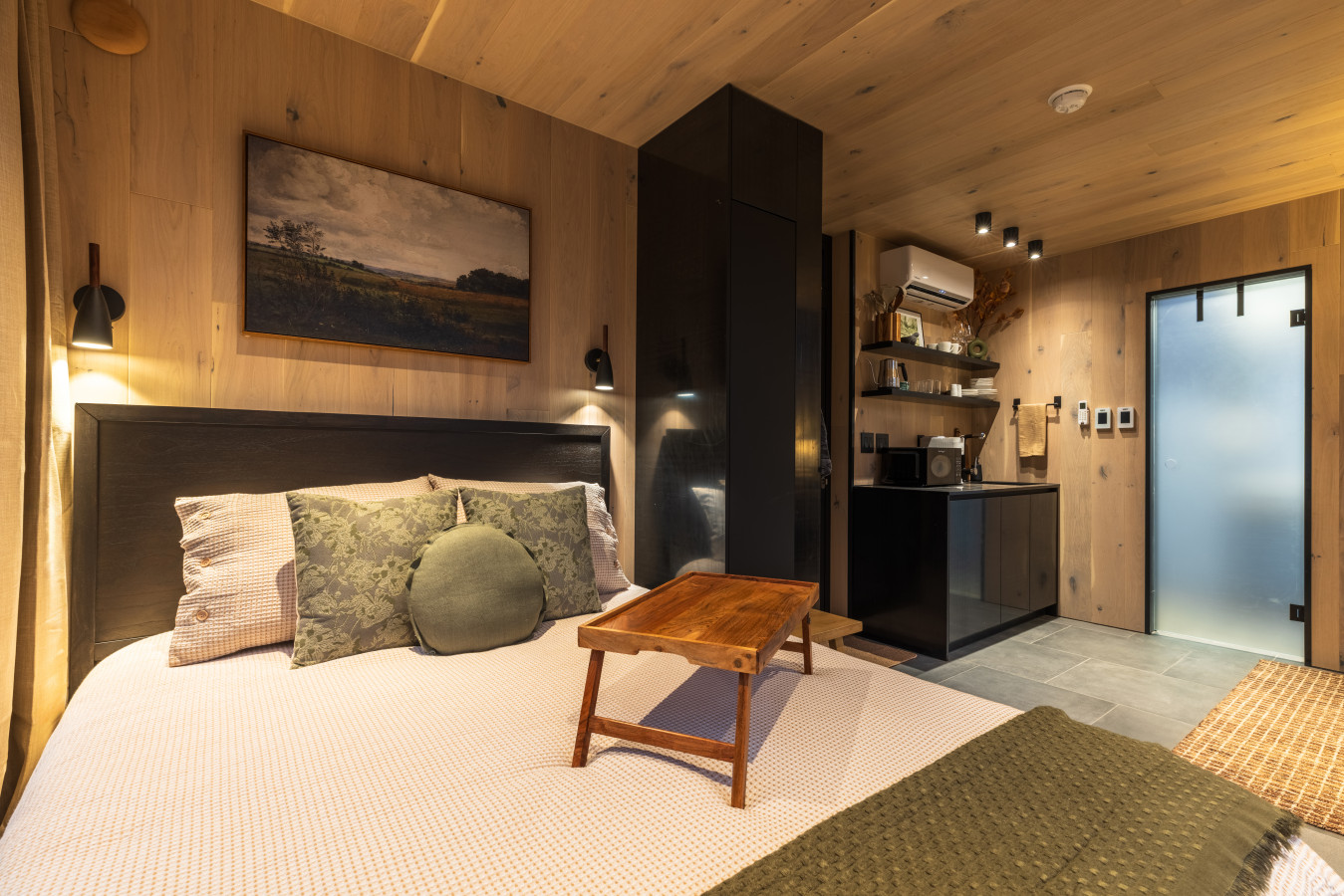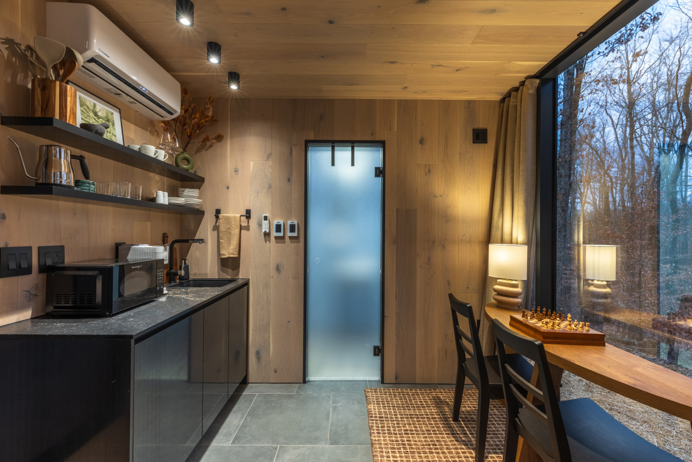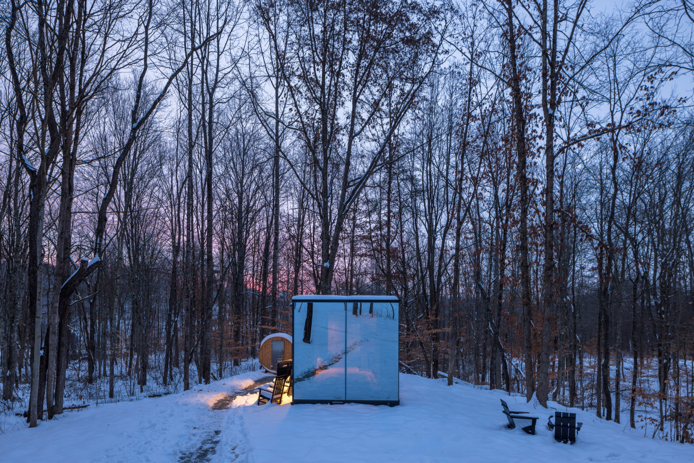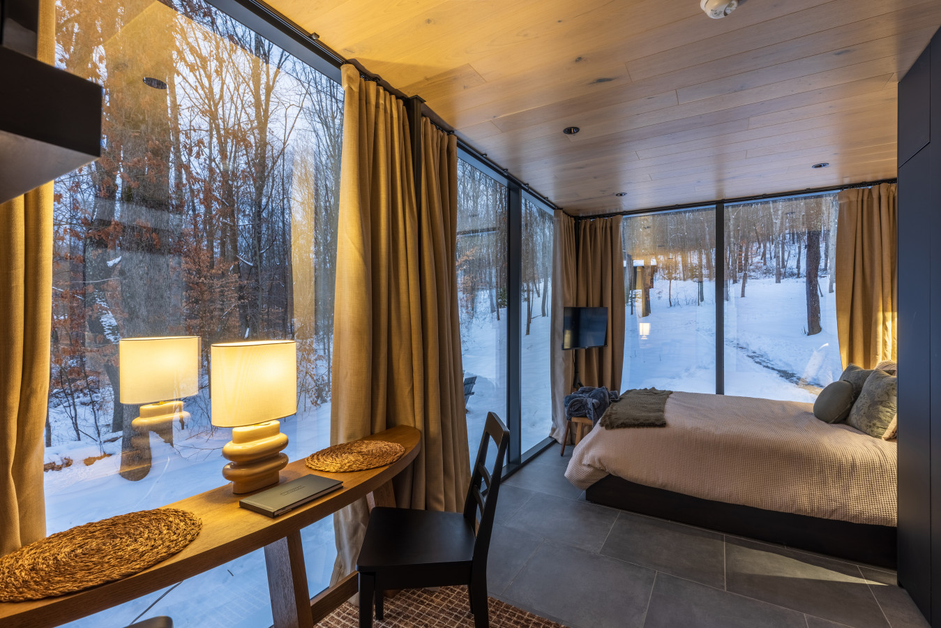 / night✨ This luxurious glass cabin retreat offers all the comforts of home—complete with a well-appointed kitchenette, a cozy fire pit, and a plush queen-sized bed—all surrounded by the quiet beauty of the woods. With soft, filtered views of the night sky and easy access to scenic hiking trails, The Mirage is the perfect place to step away from the everyday and rekindle both romance and adventure. Book your stay at The Mirage and experience the ultimate blend of relaxation, rejuvenation, and natural beauty. ✨